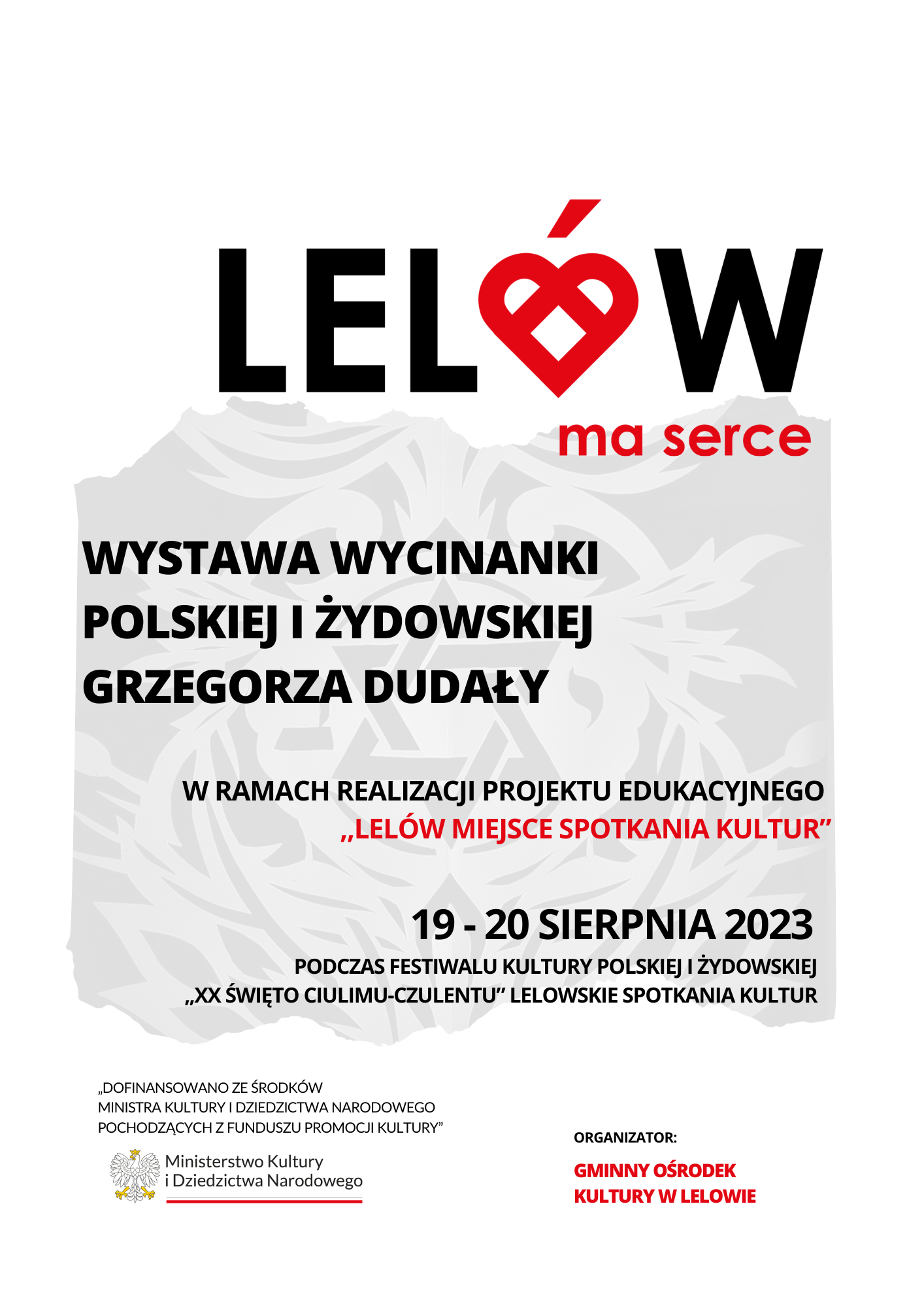 —Wystawa wycinanki polskiej i żydowskiej Grzegorza Dudały – od 19 do 20 sierpnia 2023 r. na stadionie przy ul. Sportowej w Lelowie