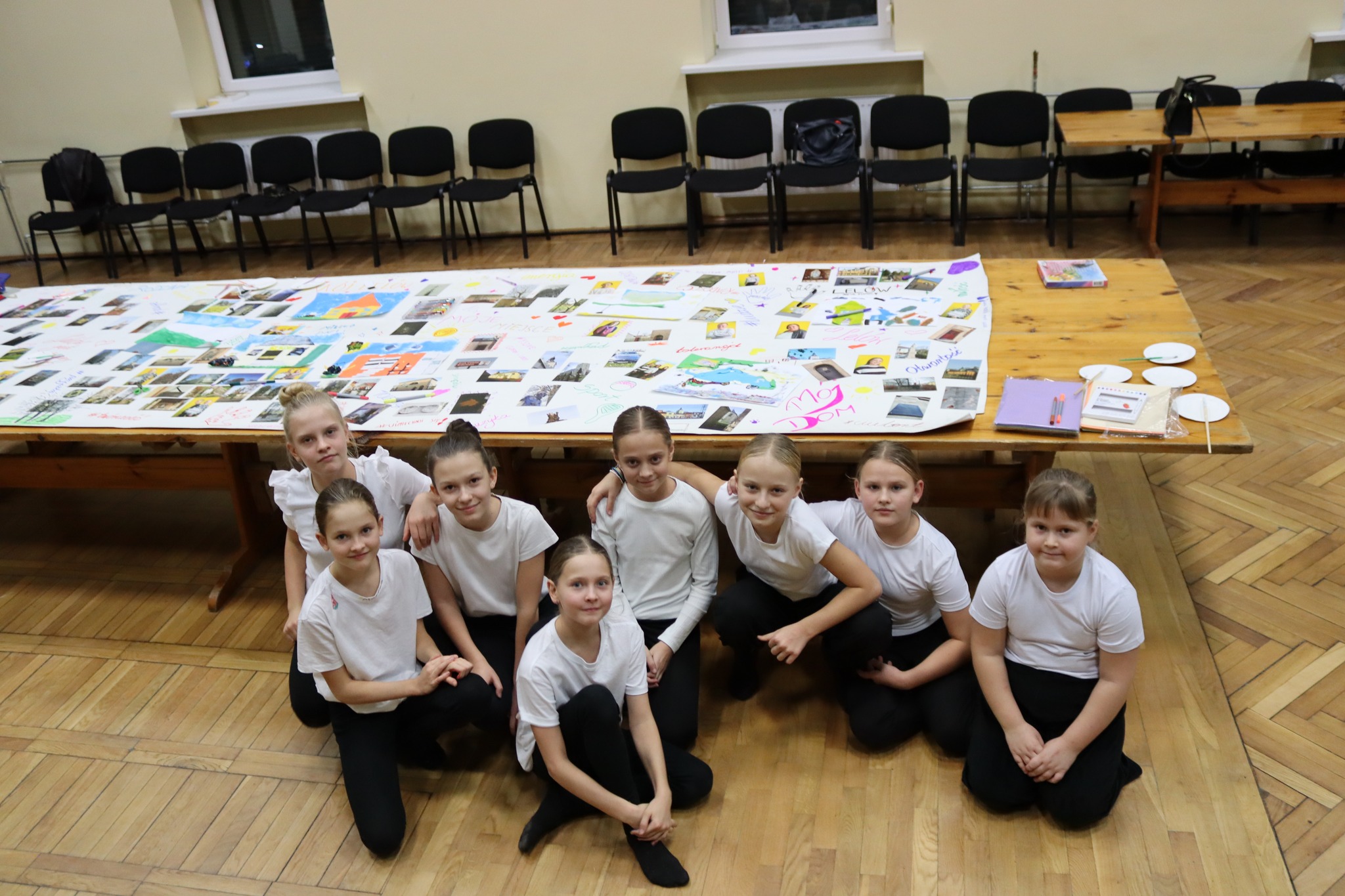 🗺️WIELKI FINAŁ - na koniec warsztatów czekał nas piękny finał. Występ dziewczyn uczęszczających na zajęcia taneczne do Oleksiego Tlustenko był pełen pięknych akrobatycznych elementów. Na końcu stworzyliśmy ogromną, kolorową mapę Lelowa, która zawiśnie na ścianie naszego ośrodka.